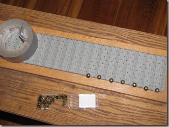 We bought finished oak boards and upholstery tacks at Menards and then ventured over to Hobby Lobby for some leather type material. But everything we found brought a more masculine look to the trailer. Finally, we settled on something lighter; more conducive to the colors already in the trailer.